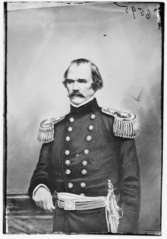 Description: Photograph shows a three-quarter-length portrait of a middle aged man in dress uniform. It appears to have been hand retouched.