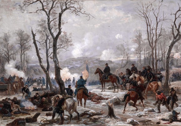 - Historical Note: Paul Philippoteaux was a Frenchman who came to the United States in 1879 and painted historical images of the Civil War for American audiences. His first was the 27 foot high, 359 foot long Battle of Gettysburg Cyclorama first shown in Chicago in 1883. It now belongs to the National Park Service, Gettysburg National Military Park. Here, Philippoteaux portrays Union General Ulysses S. Grant surveying the capture of Fort Donelson on February 16, 1862. The first victory for the North, Fort Donelson was also the place where Grant earned his nickname "Unconditional Surrender," for the terms he gave Confederate Brig. General Simon Bolivar Buckner. The artist presents Grant as the dominant figure in the scene by placing him on horseback at the center of the composition, drawing the viewer's eye through massed diagonals of figures at the lower left and right of the canvas.