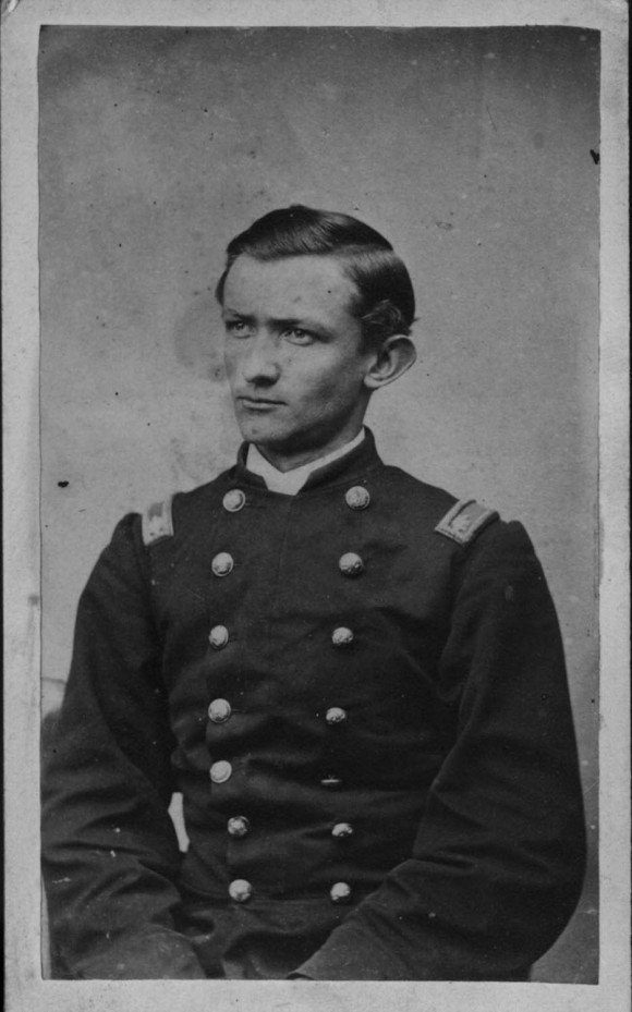 Description: This bust-length photograph depicts a man in Union officer's uniform, looking to his right.