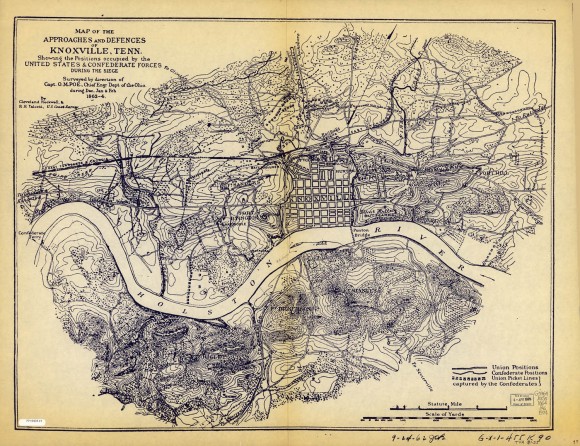 - Title: Map of the Approaches and Defences of Knoxville Showing the Positions Occupied by the United States and Confederate Forces During the Siege