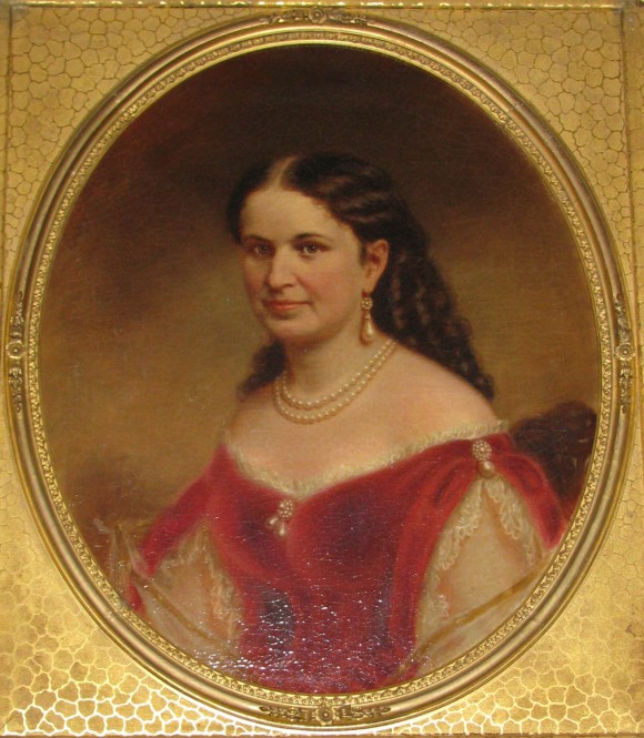- Historical Note: Mrs. Sarah Ewing Sims Carter (later Sarah Carter Gaut) was a cousin of Adelicia Acklen who had also been twice widowed. She accompanied Acklen to Louisiana in the days after Joseph Acklen's death to secure and sell the cotton crop. The two traveled by boat from New Orleans to Angola, arriving early in 1864. They found a territory in upheaval. It took the two women eight months to arrange for permission to move the cotton to the Mississippi River and to obtain the wagons and mules needed to transport it. Acklen had to play both sides off each other in order to move the cotton and there were several times when it appeared she would fail. However she managed to get 2,000 bales to Liverpool, England, where she sold it for 75 cents per pound, generating $960,000 in profits in gold. This portrait of Sarah Carter Gaut was painted by Kentucky-born William Edward West, a largely self-taught artist. West knew Thomas Sully's Philadelphia studio and also had seen Gilbert Stuart's paintings. After working as an itinerant painter in Mississippi, West went to Europe where he exhibited at the Royal Academy. He returned to Nashville in 1855 where his sisters lived, and painted this portrait at that time.