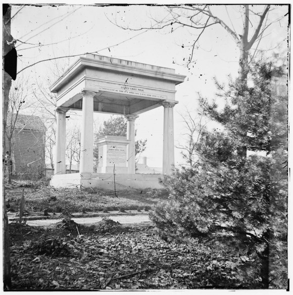 - Historical Note: Barnard was a photographer in the Topographical Branch of the Department of Engineers, Army of the Cumberland, United States Army. He traveled to Nashville, Knoxville, and Chattanooga in 1864. This image is one half of a stereograph, a photographic presentation of two images shot at slightly different vantage points, which, pasted to a card, would create a three-dimensional view. Stereographs are the predecessors to modern View Masters. Photographers working for the Army would often find a secondary outlet for their images through companies which would convert the images into stereographs for sale to the public. The Polk tomb would be an ideal image for stereographic conversion. During the Civil War, the tomb was located on the grounds of Polk Place, the home where Polk and his wife Sarah Childress Polk retired at the end of his term as President. Polk Place, which was on Capitol Hill, is now gone, and the tomb has been relocated to the grounds of the state capitol.