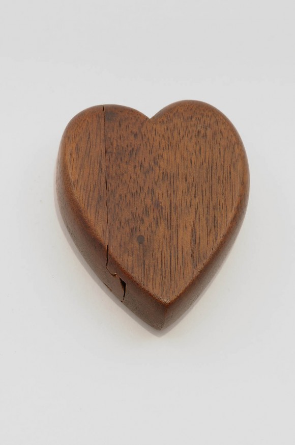 Description: This palm-sized wooden heart-shaped box slides open to reveal a painted snake head and partial body.